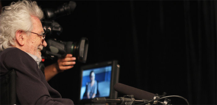 Eduardo Coutinho em filmagem de Últimas conversas
